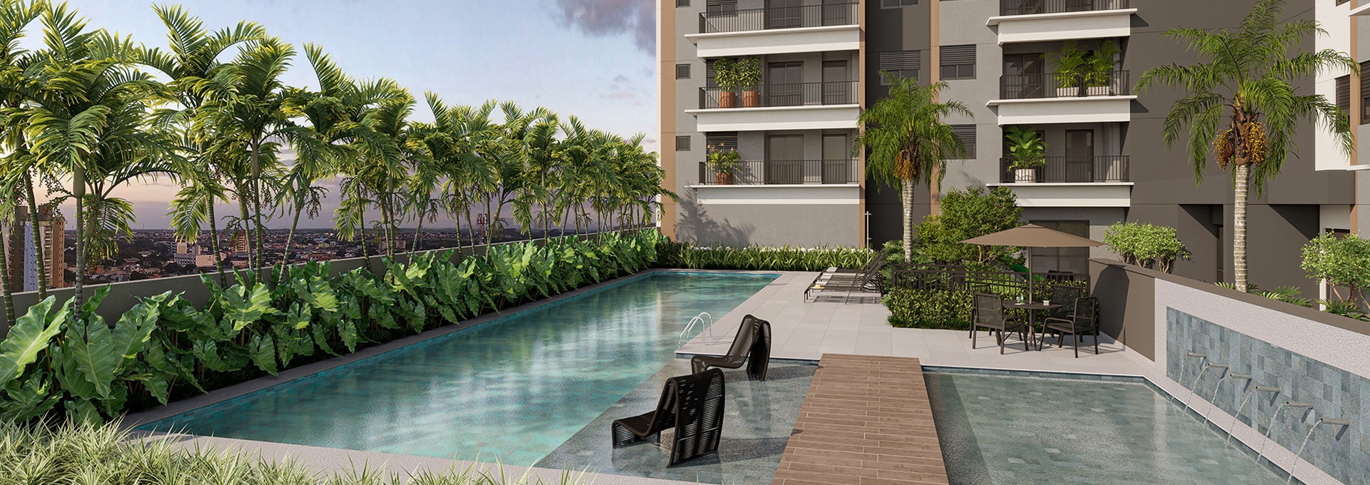 Um novo conceito de morar moderno e criativo. Espaços planejados de lazer, convivência e trabalho, integrados com apartamentos inteligentes como seus donos.